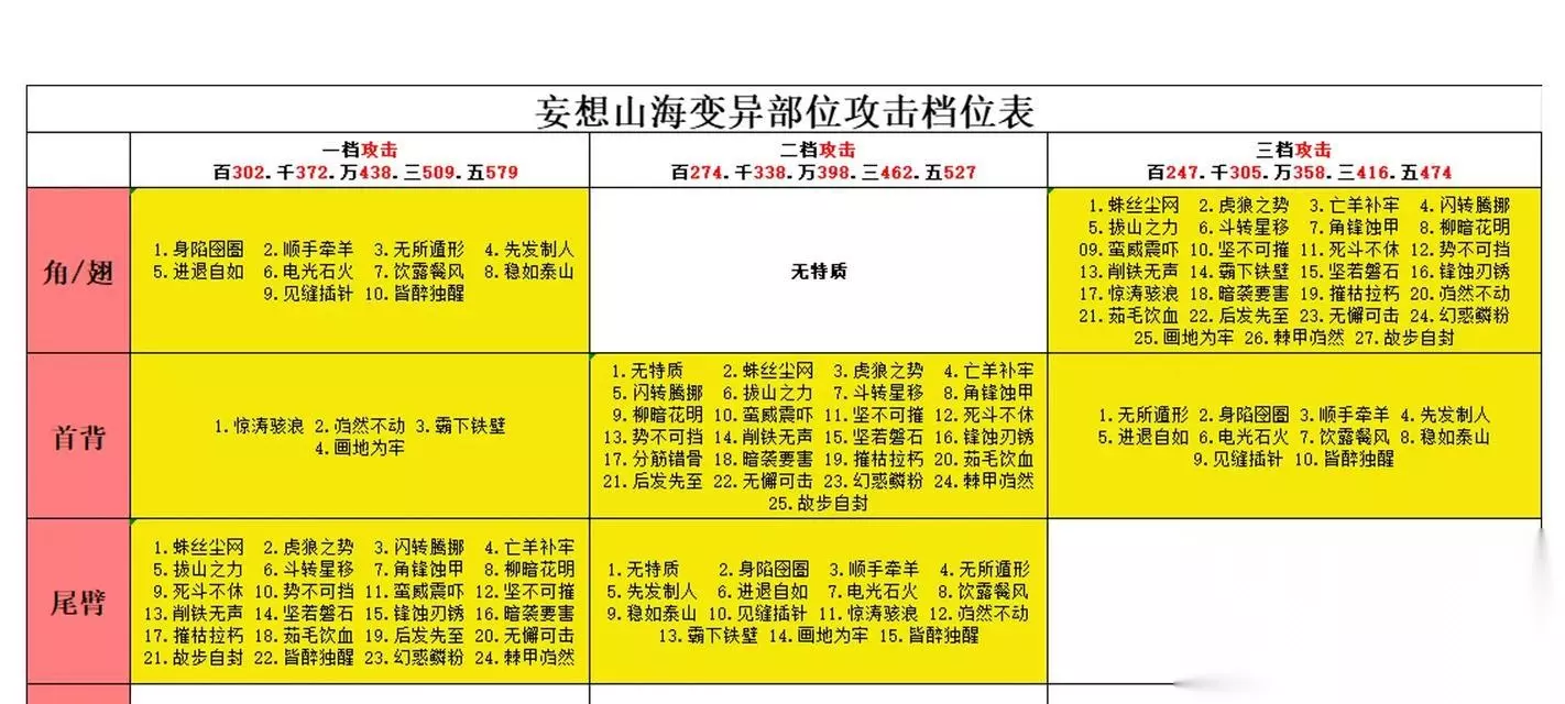 六、如何更好地利用技能书 在游戏中,我们需要不断地利用技能书来提升自己的角色实力。我们需要注意技能书的使用方法,尽量选择适合自己角色的技能书,这样才能更好地提升实力。 七、如何更好地掌握技能释放 在游戏中,我们需要不断地掌握技能释放,才能更好地进行战斗。我们需要注意技能释放的时机和方法,尽量选择适合自己角色的技能释放方法,这样才能更好地提升实力。 八、如何更好地掌握装备使用 在游戏中,我们需要不断地掌握装备使用,才能更好地进行战斗。我们需要注意装备的选择和使用方法,尽量选择适合自己角色的装备,这样才能更好地提升实力。 九、如何更好地掌握队伍组合 在游戏中,我们需要不断地掌握队伍组合,才能更好地进行战斗。我们需要注意队伍的选择和组合方法,尽量选择适合自己角色的队伍组合,这样才能更好地提升实力。 十、如何更好地掌握战斗技巧 在游戏中,我们需要不断地掌握战斗技巧,才能更好地进行战斗。我们需要注意战斗技巧的选择和使用方法,尽量选择适合自己角色的战斗技巧,这样才能更好地提升实力。 十一、如何更好地掌握副本攻略 在游戏中,副本攻略是非常重要的一个环节。我们需要掌握好副本攻略的方法,尽量选择适合自己角色的副本攻略方法,这样才能更好地提升实力。 十二、如何更好地掌握竞技场技巧 在游戏中,竞技场技巧是非常重要的一个环节。我们需要掌握好竞技场技巧的方法,尽量选择适合自己角色的竞技场技巧,这样才能更好地提升实力。 十三、如何更好地掌握公会攻略 在游戏中,公会攻略是非常重要的一个环节。我们需要掌握好公会攻略的方法,尽量选择适合自己角色的公会攻略方法,这样才能更好地提升实力。 十四、如何更好地掌握组队攻略 在游戏中,组队攻略是非常重要的一个环节。我们需要掌握好组队攻略的方法,尽量选择适合自己角色的组队攻略方法,这样才能更好地提升实力。 十五、 通过以上的攻略技巧,我们可以更好地提升自己的角色实力,轻松闯荡山海世界。希望大家可以好好利用这些技巧,将自己的角色打造得更加强大! 《妄想山海》攻略指南 《妄想山海》是一款备受热爱的游戏,其中收集神兽是游戏的重头戏。但是,这个过程常常被游戏玩家们形容为“苦逼”,因为它需要大量的时间和精力去完成。本篇文章将从攻略技巧的角度出发,帮助你在《妄想山海》中快速获得想要的部位,同时了解神兽的奥秘,以助力战斗取胜。 一:如何快速获取神兽? 在妄想山海中,神兽是必不可少的,而对于新手玩家来说,最好的方式就是通过抽卡获得。但是,如何才能快速获取神兽呢?我们可以通过完成任务、击败Boss等途径来赚取游戏币,然后用游戏币去购买神兽。 二:观察技巧:神兽属性解析 了解神兽属性是一个很重要的攻略技巧。在妄想山海中,神兽的属性分为水、火、土、风四大类别,分别对应不同的技能和能力。针对不同的对手,选择适合自己的神兽属性更容易取胜。