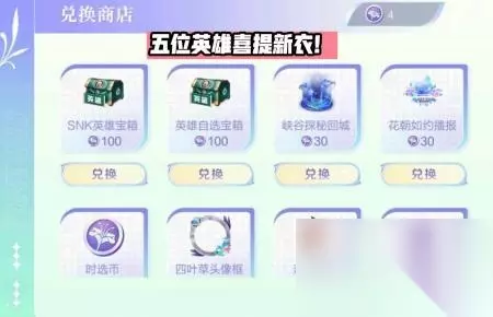 时选商店加入了SNK英雄、普通英雄自选宝箱、回城播报和四叶草头像框供玩家兑换,本期普通英雄宝箱内含杨玉环、刘备、公孙离、沈梦溪、刘禅和安琪拉6位英雄。有趣的是不只是杨玉环,宝箱内其余5位英雄都有新皮肤计划,算是官方提前预告,比如阿离芭莎联名传说、沈梦溪KPL限定和刘备国潮戏曲风皮肤。而后续时选币不足的小伙伴,也可消耗钻石兑换最多10个时选币。