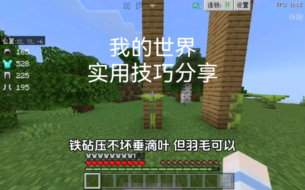 原视频:22 Simple Minecraft Tricks That Save HOURS! 原作者:mysticat 发布日期:2021-07-16 视频链接:https://www.youtube.com/watch?v=cCVcuke_lkU 00:00 高效燃料与熔炼 介绍如何通过将煤炭合成煤炭块来提升熔炼效率。 00:19 挂机挖掘技巧 展示在Java版中利用F3+T快捷键实现挂机自动挖掘的方法。 00:33 下界生存与灭火 介绍在下界使用炼药锅和活板门快速灭火的技巧。 00:45 洞穴导航与碎沙技巧 分享火把放置方位导航法,以及利用火把快速清理重力方块的技巧。 01:11 创造模式极速建筑 讲解在创造模式下通过同步左右键点击实现瞬间替换方块的技巧。 01:33 调试棒的使用 介绍调试棒(Debug Stick)在修改方块状态方面的神奇用途。 01:45 活板门围栏 说明使用活板门代替栅栏,利用AI缺陷实现玩家可跨越而动物无法逃脱的效果。 02:00 狼领子染色 提醒玩家可以给驯服的狼的项圈染色。 02:08 快速合成技巧 强调在PvP中掌握堆叠配方快速合成多件物品的重要性。 02:17 喷溅药水最大化 解释向上投掷喷溅药水使其落在头部能获得更强效果。 02:30 重力方块防僵尸 利用重力方块(如沙子或混凝土粉末)在木门被破后自动下落来防御僵尸。 02:42 出生点区块挂机 介绍利用保持加载的出生点区块(Spawn Chunk)制作自动农场。 02:54 箱子分类标识 分享同时使用物品展示框和告示牌来标记箱子的整理方法。 03:03 快捷熟食获取 通过在杀死动物前将其点燃来直接获得熟肉。 03:11 羊驼车队运输 介绍利用羊驼的跟随机制进行远距离大宗物资迁移。 03:26 引领村民小妙招 演示利用打开交易界面的方式引导村民进入指定位置。 03:45 海带填充水源 使用海带将流动的水转化为水源,便于制作水电梯。 03:57 水下照明选择 提醒玩家灯笼可以放置在水下,作为比海泡石更好的照明选择。 04:11 地图旗帜标记 展示在地图上使用命名过的旗帜来添加地标。 04:17 农田水分布局 说明单格水如何滋润大面积农田,并可用含水台阶进行装饰。 04:30 向下垂直建筑技巧 介绍利用活板门让玩家进入爬行状态,从而实现向下方位放置方块。 04:43 总结与订阅引导 作者总结频道特色并引导观众订阅和观看后续视频。 使用YouDub AI翻译配音制作 项目地址:https://github.com/liuzhao1225/YouDub-webui
