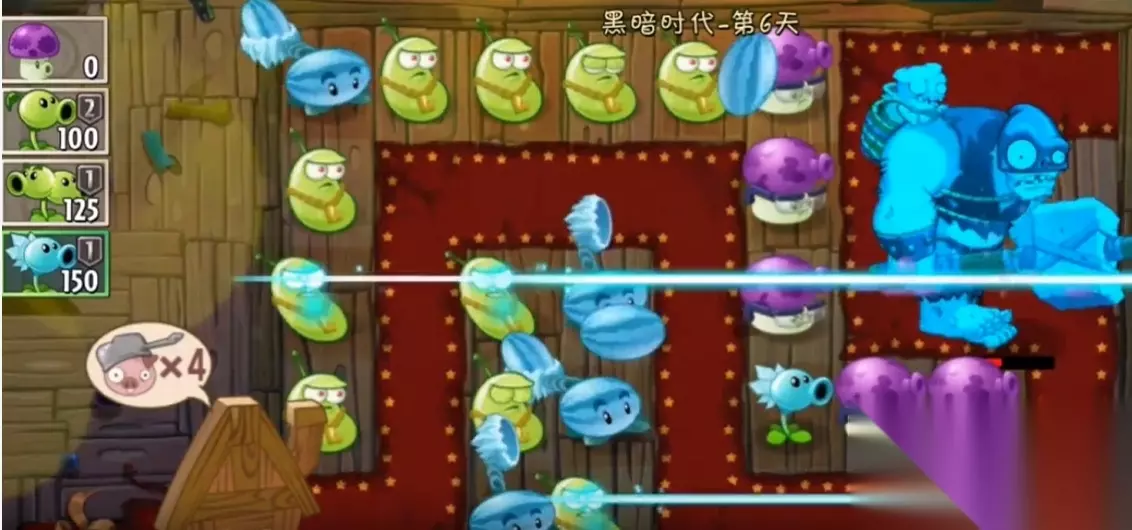 若小屋血量告急,可临时铲除后排植物换取前线输出空间。最终阶段需保持至少两列寒冰西瓜的控制链,同时确保激光豆覆盖所有纵向通道。阳光过剩时可种植临时性向日葵作为缓冲单位,但需避免影响核心输出阵型。通关要点在于严格遵循植物进阶路线:小喷菇→大喷菇→激光豆,寒冰射手→冰西瓜。布局上采用三线控制+纵向输出的经典阵型,即三条寒冰线配合纵向激光火力网。