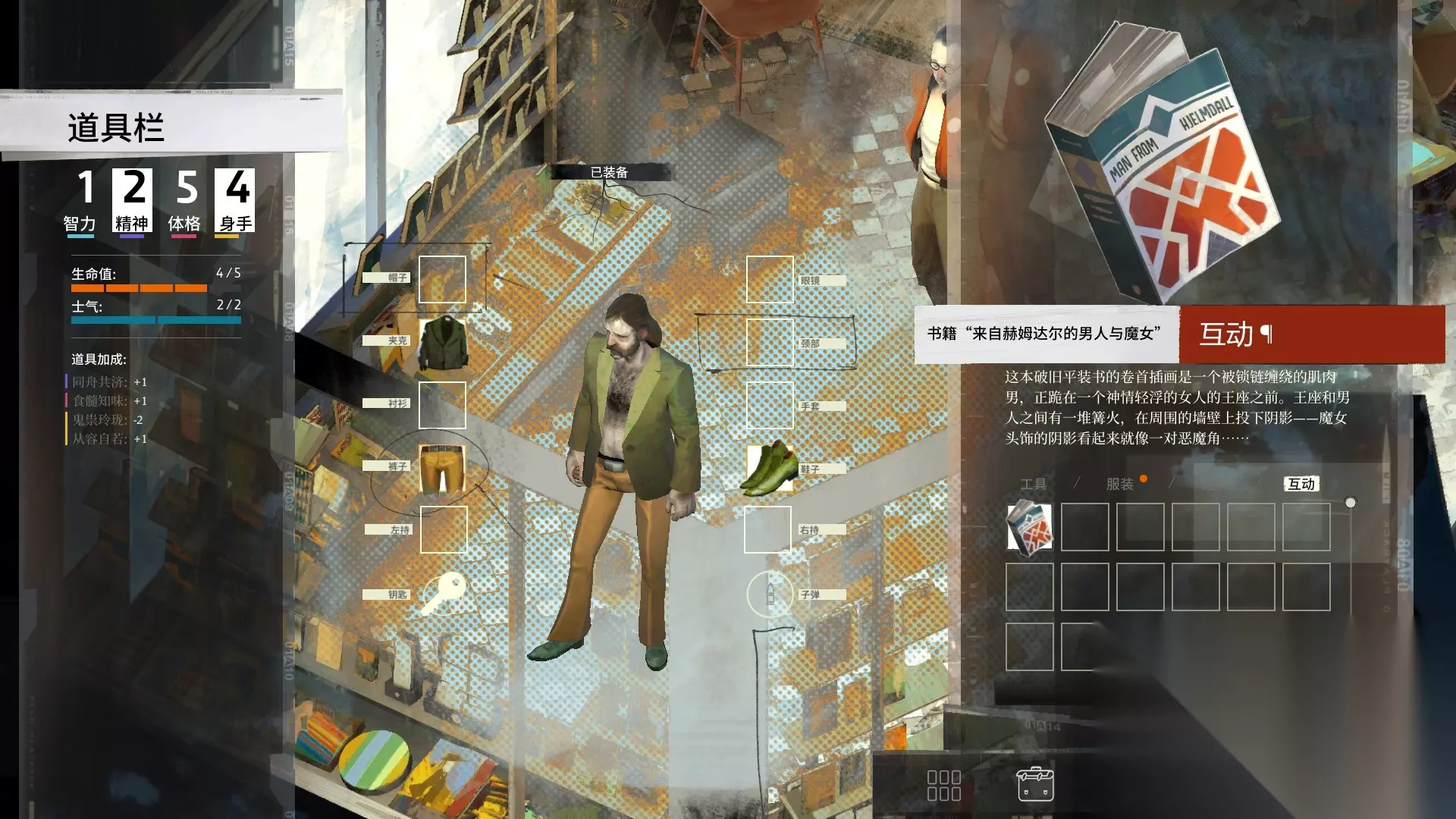 去书店购买“来自赫姆达尔的男人与魔女”,价格为九元。点击物品栏与其互动,一直阅读,读完了继续重新阅读,时间会高速流逝,一直读到晚上十点后停止阅读。