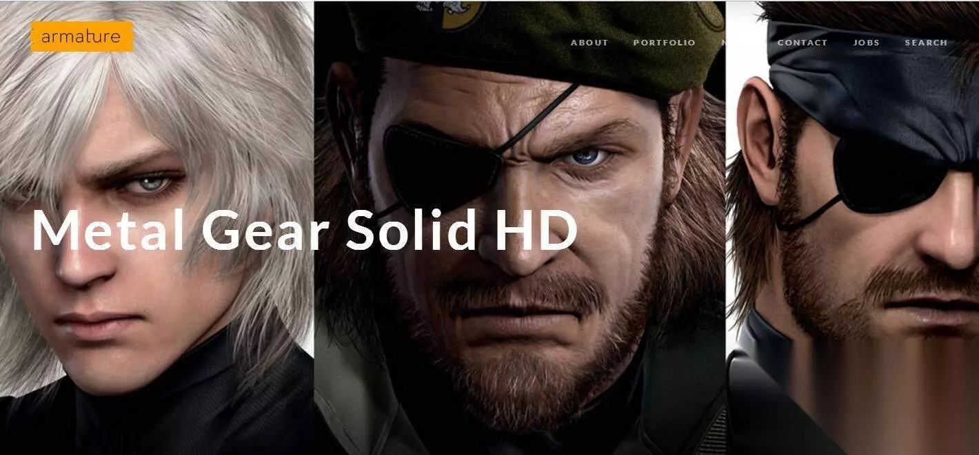 开发商Armature的网站截图 合金装备HD合集》是由Bluepoint负责制作的一款复刻版合集游戏,其中包含了《合金装备2:自由之子》、《合金装备3:食蛇者》与《合金装备:和平行者》,游戏已经登陆了PS3、PS Vita平台(PSV版由《再生核心》开发商负责制作)。