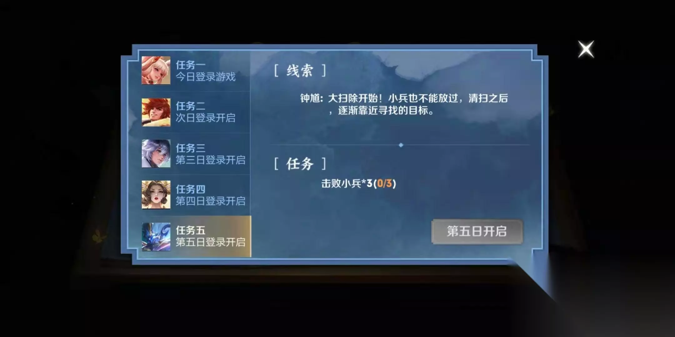 活动规则: 1、玩家触发奇遇活动后需进入活动,跟随咕嗒逐步开启自己本次活动的专属奖励和5个专属任务,完成5个任务后即可领取本次任务大奖,可能获得:圣诞专属头像框、夺鲲大作战头像框、咕嗒的精美自选礼(内含改名卡)等奖励之一,了解全部奖池信息可见文末; 2、任务说明:获取大奖前需要完成总计5个任务,每天登录可解锁一个任务,解锁后的任务即可前往完成,需赶在活动结束时间前完成所有任务才可获得大奖喔; 3、任务开启截止时间:为保证玩家有足够的时间完成任务,需于活动结束日的前4天开启任务,超过此时间还未开启任务的玩家将不再看到此活动; 4、所有对局任务(不包括特指娱乐模式的任务),均对开房间、人机对局除外的所有5V5对局模式生效; 5、12月11日-12月31日期间,登录游戏即有机会触发本次奇遇,登录频次越高触发几率越大喔~ 6、活动奖励通过游戏邮箱发放,预计24小时内到账。 本期活动参与范围:正式服。 本期大奖一览: