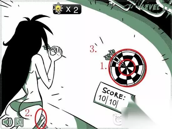 先点靶心投2个飞镖,最后点击身下的RPG,再点击准心。(如上图所示) 愚人劫6第11关攻略: