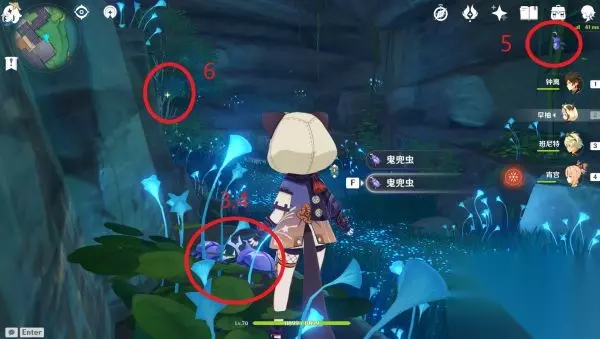 原神鬼兜虫收集点位介绍 一斗的突破素材是稻妻特产虫子,这个东西又不能在壶里面种,所以还是比较麻烦的;它藏在树上又不好寻找,可以选择抽空来收集一波。 第一个地方在稻妻城的下面,进去山洞以后左拐再进第二个山洞,里面有6个鬼兜虫。