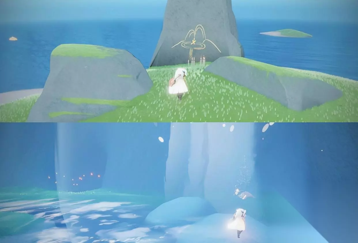 今天来给各位小伙伴们带来季节任务的攻略,要知道每个季节任务都有不少的爱心,全做了的话差不多四十颗左右的爱心。 但是咱们不着急,先一个一个来。今天主要讲圣岛季的任务攻略,一起来看看吧。 01 爱心任务 从云野的蝴蝶平原走右边的隐藏图一路前往圣岛地图,然后往海岛高山的左下飞,看到一个喷气孔后往坡上走就能看到先导先祖了,然后接取任务。 第一个任务:我们接取到第一个任务之后,我们前往沙滩会刷大黑色贝壳的岛上面去,看到三个石头往中间走,点燃蜡烛就可以看到壁画,提示我们钟在一个山间瀑布水池的位置。 然后我们回到大岛上,来到岛中间的瀑布水池处,在瀑布的后面就是第一个任务的钟,大叫然后拾取即可,然后回去找先祖,完成任务,获得一颗爱心。
