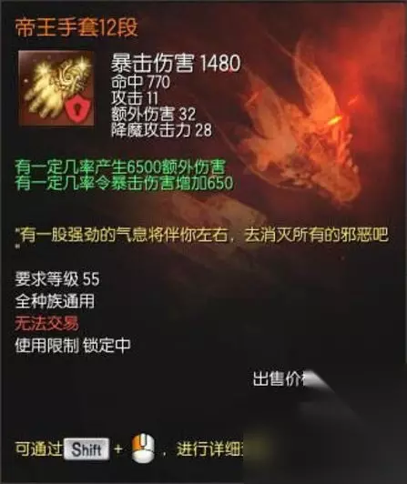 这个手套就很强力了,1480暴击伤害,770命中,绿字效果也是加暴击伤害。可以补回来很多输出。 其他一些东西:
