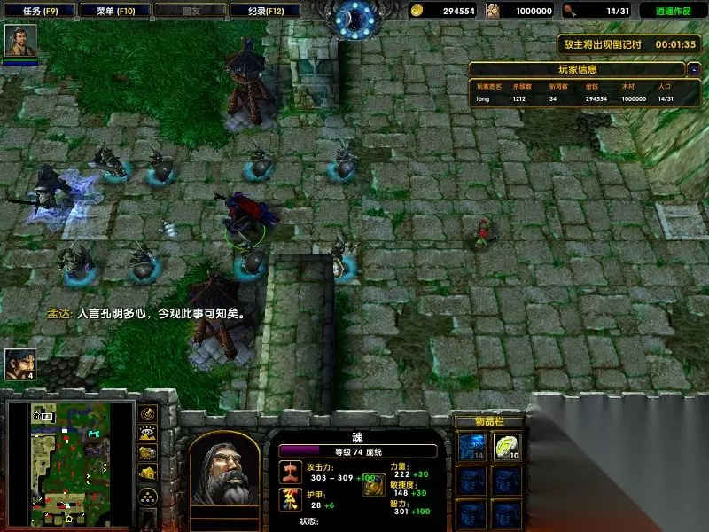 守卫剑阁1.92怎么给孔明换装备很多玩家还不清楚,今天小编就来教大家守卫剑阁1.92给孔明换装备的具体方法,希望对各位玩家有所帮助! 守卫剑阁1.92给孔明换装备方法攻略 1,玉玺任务: 触发条件:杀死王八,掉落玉玺,交给孔明(带玉玺走到孔明身边即可,不要放到他身上)。 任务奖励:英雄全属性+15,另外后主派新的军需官里面可以买飞飞,山岳等高级雇佣兵。 2,强盗任务: 触发条件:英雄先到右上角的村子里接任务,然后杀死强盗头子得到强盗头子的首级,然后交给村长 3,王朗任务: 触发条件:王朗出现后,走到孔明身前,触发对话如下 任务奖励:孔明获得3000点经验和全属性20 4,王八任务: 触发条件:带着王八去给左下角的村长看下,出现如下对话 任务奖励:可在神秘商人处出现一件高级装备(需要花钱买) 5,送信和新城任务 触发条件:雅丹死后会触发剧情,然后再孔明身边出现书信,拿着书信去新城找孟达,(走过去到孟达身前的区域就行)触发新任务,开启新城 任务奖励:英雄获得经验5000和全属性10,开启新城刷兵任务大量的钱和经验,另外孟达的等级提升小明可以换装备,