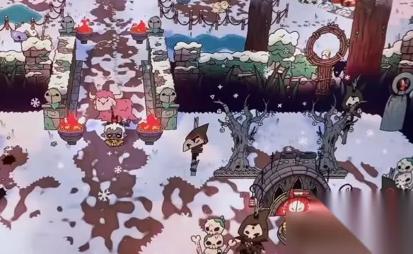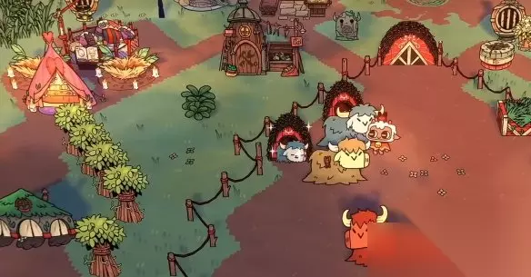 和大多数农场类游戏不同的是,本作将资源获取机制发挥到了极致——玩家可以直接挥动斧头屠宰动物,从而直接获得肉类等稀缺物资,无需再依赖地牢探索或者信徒献祭来获取。