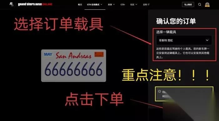 输入自定义车牌号 选择订单载具后点击[下单] 注意:下单前,请提前进入线上模式加入战局(这里推荐——仅限邀请的战局)