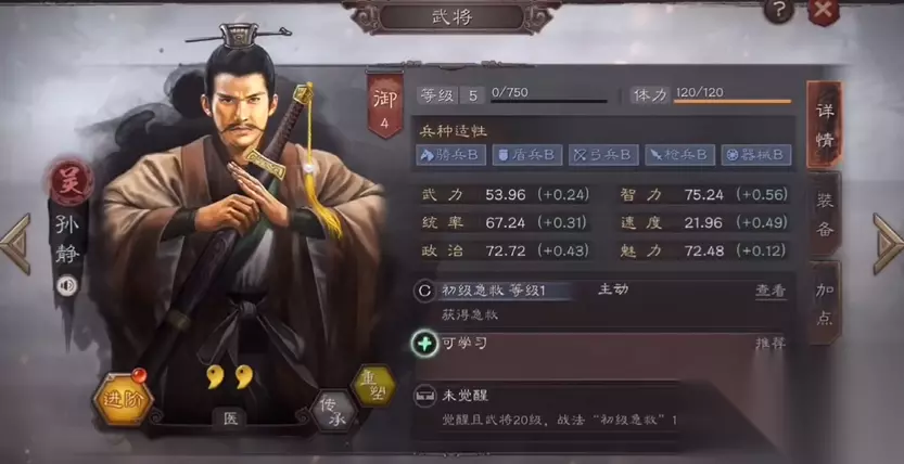 通过消耗同名武将卡实现,每次进阶提供10点自由属性点,五星武将最多可进阶五次。进阶后不仅保留典藏特性,属性加成也更高,例如攻防加成从普通武将的10%提升到12%,实战表现更突出。资源有限时,应优先培养核心武将,例如曹操、赵云等,通过进阶和属性加点弥补基础差距。练兵功能在武将20级后使用效果显著,单独上阵目标武将,每次消耗30体力和30000铜币获得固定经验值,演武场等级越高提供的经验加成越明显。委任政治类武将在城池中也能被动获取经验,这是辅助升级的稳定方式。