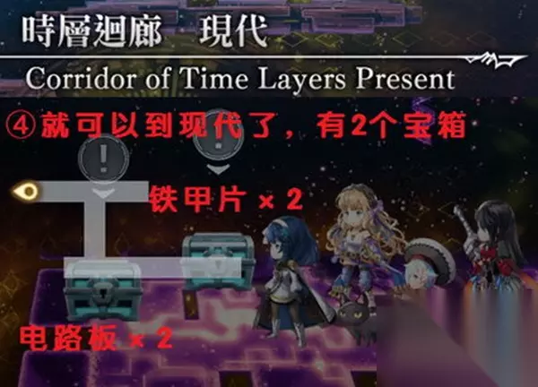 此外,时层回廊可以到现代,有2个宝箱,是2个打普通小怪就能获得的素材