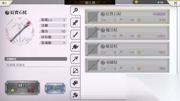 11、火之村和曙光都市有本店限定武器防具 奖励:武器防具开图鉴