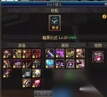 小技能满了百鬼和僵尸,剩余点加上了诅咒之箭,大巴,引点1,。 经过实战,僵尸实战效果对我来说挺好,脱手,引爆不占用本体动作,占用王子动作时间也较少,cd不长不短刚好。至于为什么不点满暗魂波嘛,暗魂波优点cd短,伤害高。但是站桩蓄力技能,无霸体,引导性移动性缓慢。实战效果不是很好,但是在王座合理运用会有亮眼的效果 二、BUFF换装 1、BUFF介绍 暗黑仪式,25技能,20级精通。满级提升70%技能攻击力,极限可达97% 2、换装搭配思路 20级暗黑仪式 血染苍穹之杖 精.复仇6,多余的部位替换成裂魂之绿气息散件。 3、异界套装/异界散件绿气息属性介绍 装备名称属性 精·复仇邪念6件套 暗黑仪式额外增加10%加算 精.裂魂之异次元绿气息武器 暗黑仪式额外增加2%加算 精.裂魂之异次元绿气息 上衣/下装/防具/魔法石等暗黑仪式额外增加1%加算 4、额外加成装备 装备名称属性 血染苍穹之杖额外增加13%加算 5、等级装备推荐 装备名称 /BUFF等级 超大陆瓦巴拉的大地2 街道迷影2 时间旅行者的怀表1 高科技夜袭戒指1 咒术师的九个颅骨2 哈勒斯上衣绝版1 任意鞋附魔技能宝珠1 任意腰带附魔技能宝珠1 任意头肩附魔技能宝珠1 任意称号附魔技能宝珠1 武动之魂雪衫胸甲2 哈勒斯上衣 1 绝版 王室之秘籍灵魂收割者1 海神谜咒之轻灵护腿1 由于装备太多,就挑选了常见的一些 6、普通换装举例20级仪式 复仇6 血染,没有绿皮,装备是死的,人是活的。可自由搭配 上衣:圣物:控魂女神的软陶胸甲 护肩:复仇的邪念护肩技能宝珠 下装:海神谜咒之轻灵护腿 腰带:复仇的邪念腰带 鞋子:复仇的邪念战靴 武器:血染苍穹之杖 称号:任意带技能宝珠的称号即可 手镯:复仇的邪念护腕 项链:复仇的邪念项链 戒指:高科技夜袭戒指 辅助装备:王室之秘籍灵魂收割者带白金仪式徽章 魔法石:复仇的邪念魔法石 外加时装,光环,宠物三级,单人在没有超大陆上衣或者武动之魂上衣,以及绝版的3s宠物和两级仪式称号的前提下,得有两个白金或者两个技能宝珠才能满20级仪式 这是我小号死灵的buff装搭配