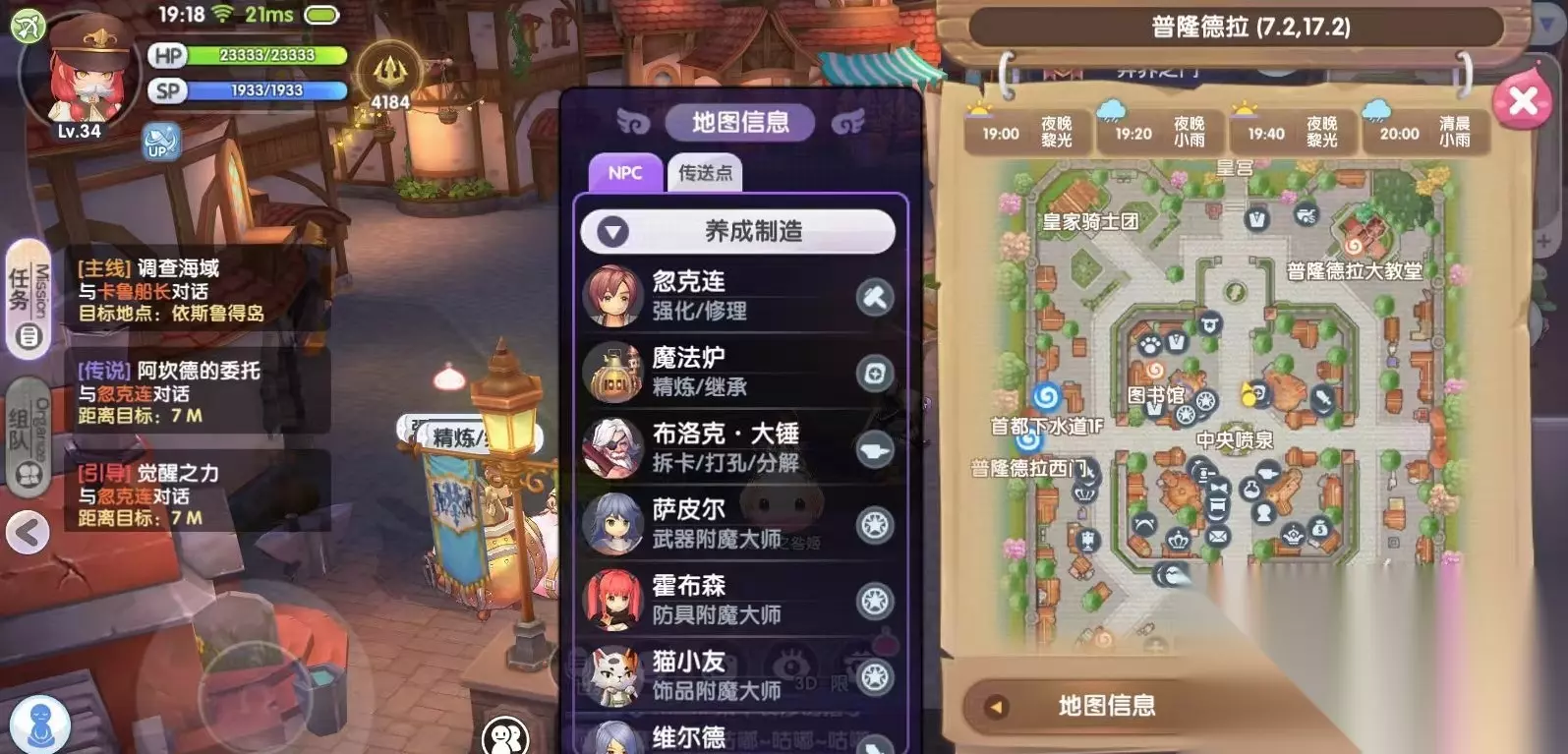 大家打开游戏中的地图,可以看到有非常丰富的设定,包括当前地图信息,npc传送点,每个位置的所处坐标等,都会详细展现出来,同时还有当前天气以及时间,这些都是比较有用的信息。大家利用地图可以很轻松地找到游戏中的所有Npc。这些npc拥有自己的专属职能。涵盖大家在游戏中所需要用到的强化、精炼和装备等各种功能,还有时装、坐骑甚至美瞳美发等也都有单独的npc提供帮助。