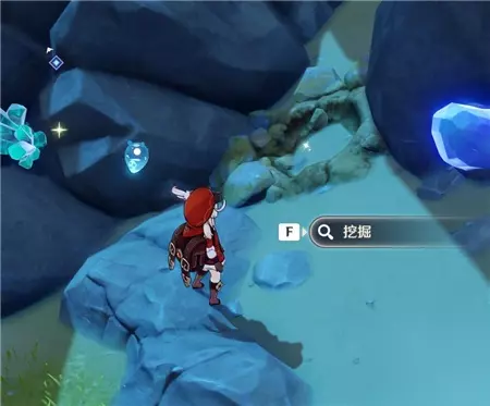 鹤尾的宝藏在孤云阁的小岛上,如图这里可以挖掘的小坑就是。需要清理三只小岩龙蜥和一个遗迹猎者,不确定不清能不能拿,反正我清了