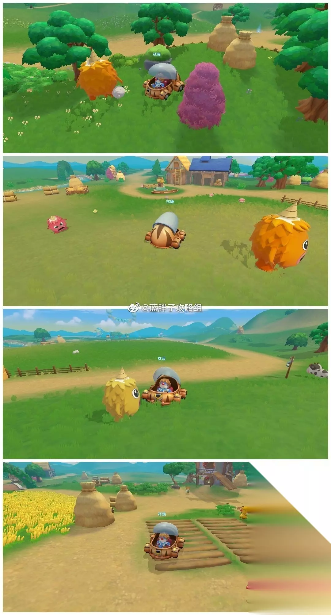 【阳光牧场毛毛头位置】 1、橙色毛毛头在牧场入口处的右边,位于平时刷新蘑菇的草地上。 2、红色毛毛头在对面的空地上。 3、另一只橙色毛毛头也在空地上。 4、黄色毛毛头在有牛出没的草地上。 5、红色毛毛头在试验田里面。