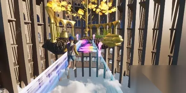 3、随后我们来到最后一段桥,一直往前跑就可以了,然后就可以成功闯关彩虹桥了哦!