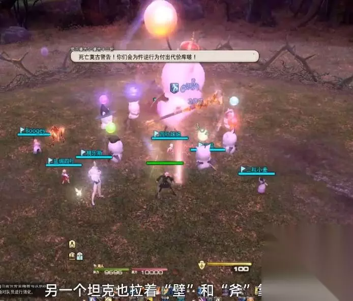 2、善王出现时主坦克全力拉住善王,副坦克全力拉住剑莫古及斧莫古(两者挨在一起)。之后两个坦克分别去场地角落拉好即可。DPS再此阶段应按照黑魔->白魔->诗人(顺序可与此不同,因此建议有人在第一阶段给小莫古们用目标数字标记标号击杀顺序。)的顺序集火击杀小莫古。干掉黑白诗后迅速击杀其余小莫古。注意此阶段除主坦不要过多攻击善王,否则会造成强制性团灭。此阶段有较多场地AoE攻击,部分攻击伤害较高,应注意躲闪。击杀全部小莫古后,击倒善王即可。