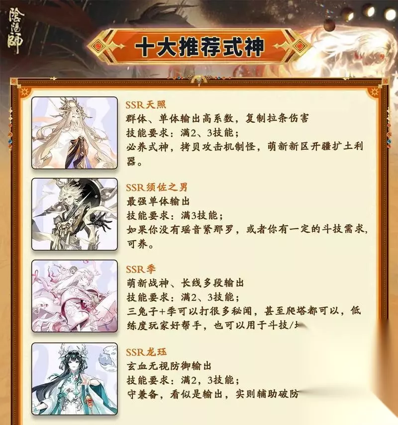 高效击败灰仙的战斗策略 1.选择合适的式神 在面对灰仙时,合理的式神选择至关重要。以下是几种有效的式神选择: 控制系式神:如雪女、凤凰火,通过控制技能如冰冻和混乱,打断灰仙的技能释放。 辅助系式神:如辉夜姬,提高队伍的生存能力,并为队友提供治疗支持。 输出系式神:如玉藻前、大天狗,利用高爆发的伤害输出快速击溃灰仙。 2.强化式神属性 在战斗前,确保你的式神属性得到充分强化。针对灰仙的特点,重点强化以下属性: 生命值:确保式神有足够的生命值以承受灰仙的攻击。 效果抵抗:提高式神的效果抵抗能力,降低被控制的概率。 速度:在一定程度上提升速度,可先手行动,减少灰仙攻击次数。 3.战术布局和行动顺序 战斗布局和行动顺序是影响战斗胜负的重要因素。以下是一些建议: 先手布局:根据对手的式神选择合理地调整自己的式神布局,争取先手优势。 合理行动:根据式神的技能特性安排行动顺序,如先让具有恢复或控制能力的式神行动,之后再进行强力输出。 4.注意战斗中的细节 在战斗过程中,注意以下细节,提高战斗效率: 技能使用时机:合理判断何时使用大招和控制技能,例如在灰仙归隐技能即将结束时发动强力攻击。 灵活调整策略:观察战斗局势,根据灰仙的行动模式及时调整策略。 利用式神特性:部分式神的被动技能或特殊效果可以有效克制灰仙,要充分利用这些特性。