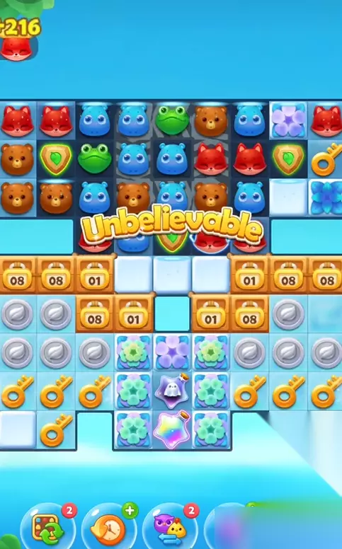 魔法石是这关的核心,开局先激活它们能带动连锁反应。利用魔法石收集钥匙时注意观察布局,避免浪费步数。底部两侧的消除要稳扎稳打,优先打通中间通道才能让特效覆盖更广。如果遇到卡关,可以尝试在底部组合横向特效,配合竖向特效能快速清理顽固冰块。剩余冰块较少时,可以集中处理角落的残留冰块。上部生成的魔力鸟尽量留到最后使用,针对剩余冰块精准消除。
