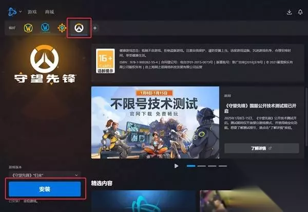 点击按钮即可下载 战网桌面应用安装完成后,在左上角的“偏好”中选择《守望先锋》图标,并点击左下角的“安装”按钮即可下载游戏。
