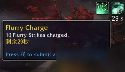穿着装备的过程中并未触发疾风充能,脱掉装备降低最大血量后就触发了1层疾风充能。 由此确认疾风充能是根据当前血量判定是否获取的,可能存在一个内部计数器,如果发现计数器大于当前最大血量则赋予1层buff。 buff持续30秒,持续时间内需要通过疾风打击消耗,或者获取新的buff进行叠层并重置持续时间。
