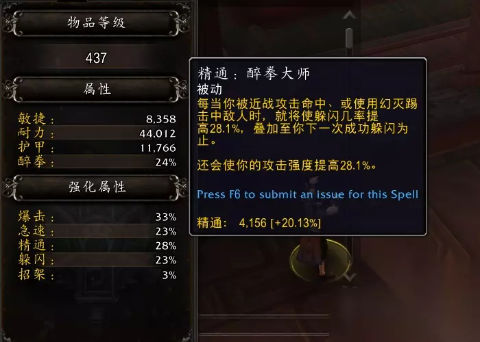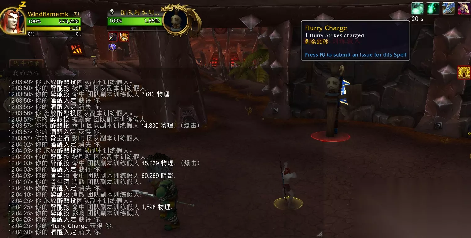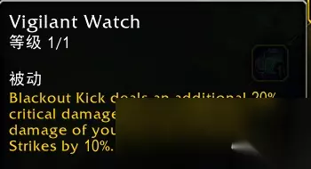 效果翻译(仅酒仙专精部分): 幻灭踢造成20%额外爆击伤害,并提高你下一个疾风打击10%伤害。 buff