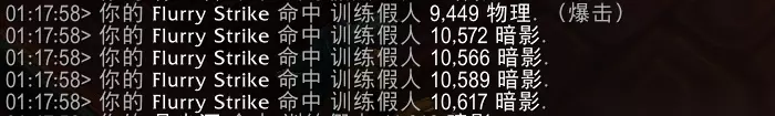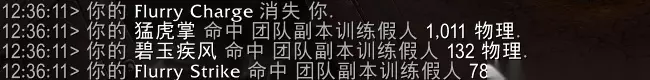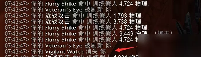 因为长城智慧在疾风打击前就获取了,所以本次疾风打击可以享受第三种效果的增益,提供AOE伤害。 这里一共有4个木桩,AOE造成了4次伤害,说明这次AOE伤害也可以影响到主目标。 疾风打击中的每一次伤害都能触发一次AOE。