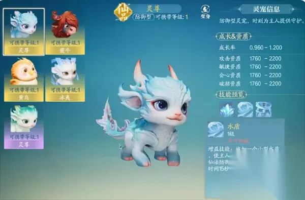 治疗型(黄鸟):核心技能威 “水盾”,施加一个小型水盾使主人获得 10% 的物理防御和仙法防御加成,持续 3 秒冷却时间 15 秒。