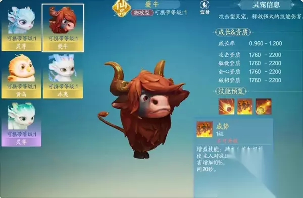 诛仙2游戏里灵宠可以与玩家一起打怪,提升玩家的战斗力。在战斗中,高等级的灵宠甚至能够秒杀怪物,极大减轻玩家的负担,以下是灵宠的搭配指南,合理的搭配才能发挥最大优势。 诛仙2灵宠搭配解析 灵宠有 4 大类型,物攻型(夔牛法)、法攻型(冰夷)、治疗型(黄鸟)、防御型(灵尊),然后就是常规的灵宠养成涉及等级、洗练 / 突破、技能书。 重:前期不用刻意追求洗练 / 技能书,能用即可,后续再针对每只灵宠的功能和需求搭配。 物攻型(夔牛法):核心技能威 “势力”,对主人施加祝福使主人对减速状态下的敌人伤害增加 10%,持续 5 秒。冷却时间 20 秒。