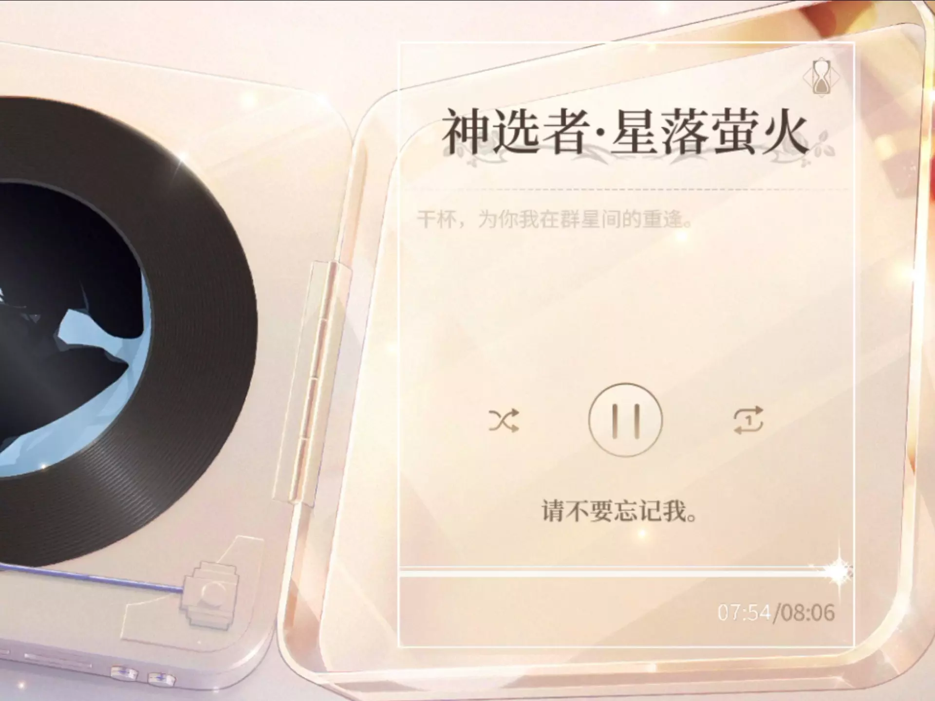 这是游戏《时空中的绘旅人》的神选者特别私语【星落萤火】相关内容,带有浪漫的重逢相关台词,同时游戏内还有相关的限时礼包在售,充满与群星重逢的浪漫氛围。