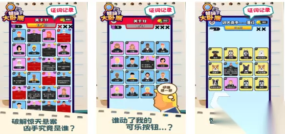 这是款寻找出卧底的精品竖屏推理类游戏,加入了极为复杂的逻辑谜题和烧脑的操作,极致有趣的找卧底体验令人印象深刻,还加入了多人团队推理玩法让玩家直呼过瘾,众多职业和NPC的加持让气氛显得扑朔迷离,寻找卧底并进行破案的游戏理念也很特殊,考验着逻辑推理能力的游戏设定也是点睛之笔。 高速下载 普通下载 优先233乐园APP下载 3、《找卧底》