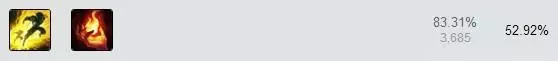 召唤师技能一般选择闪现和点燃(百分比依次为出场率和胜率)