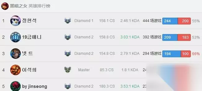 4.韩服第一安妮符文天赋推荐 首先RANK分高的,也就是段位高的,虽然英雄池比较深,但是英雄不一定专精,小编为大家推荐的是一个英雄玩的场次最多,也就是说对这个英雄有较深的认知。 韩服阿卡丽英雄熟练度排行前5的召唤师