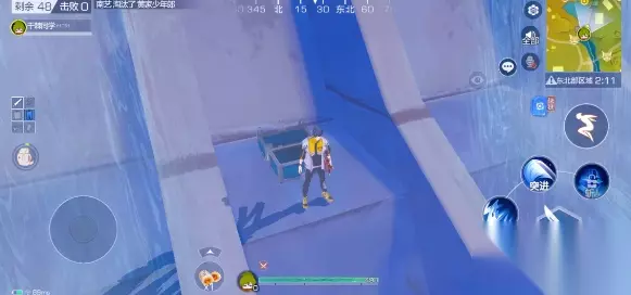 3、跳下去后向前跳三次,然后翻过前面挡住的墙,到了中间会看到一个蓝色的宝箱。 4、这个蓝色宝箱也是游戏中最难找的宝箱,里面会有很多好东西。