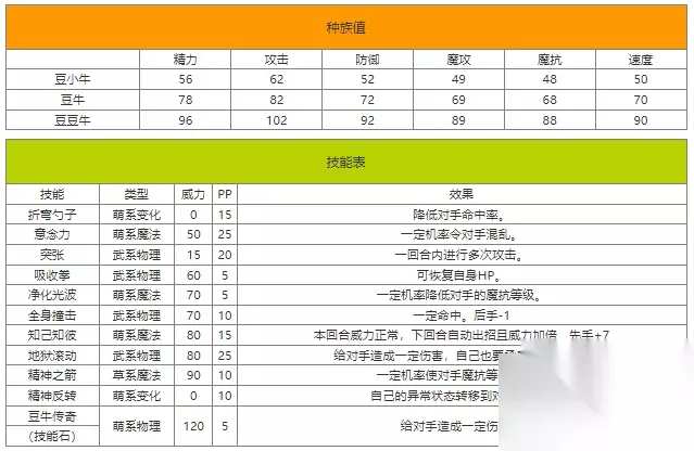 • 豆豆牛:在《洛克王国》这款深受喜爱的休闲类手游中,豆豆牛以其独特的萌系形象和武力值吸引玩家目光。 二、属性与技能