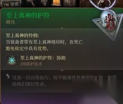 杀死女祭司获得。 和其他带法术的项链一样,仅用于猴戏和触发。 整个游戏里需要真神印记的就那么几件,又不是很出彩,没必要往身上烫个疤。