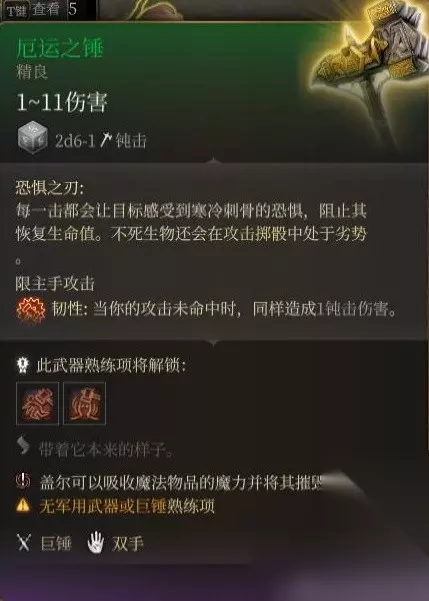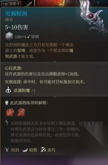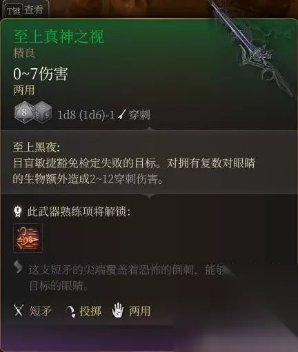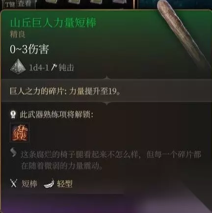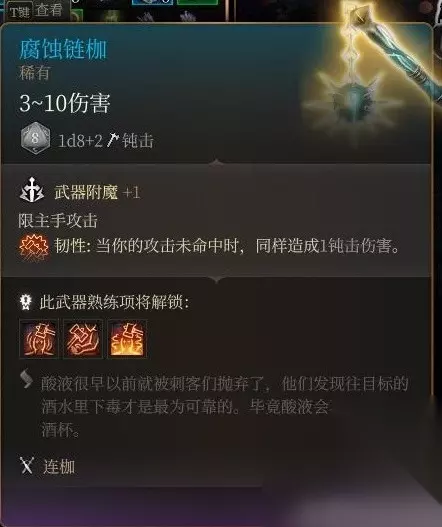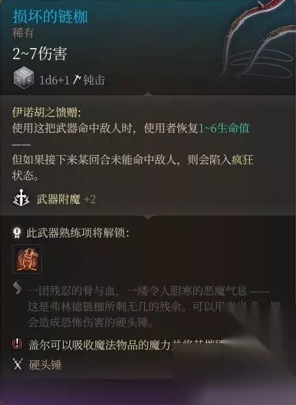 豺狼洞口死掉的秘探身上获得。 命中亢奋效果只有2层,武器本身无强化,而且bg3单手武器势微,实属无用了。 玩双持倒是能跟上面的损坏链枷配合着用。