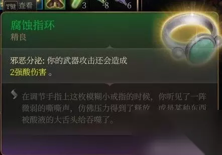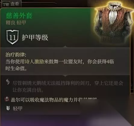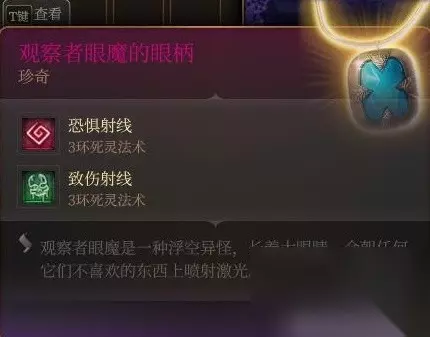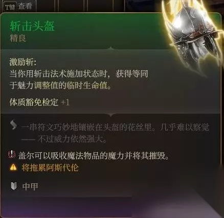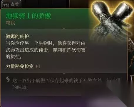 后面密室的宝箱里。 挺拉胯的,有点对不起珍奇品质。 第一是光环有范围,第二是召唤物有了全抗也多数是垃圾。第三是要过感知豁免不然就红圈。 第三章学了亡灵大军之后倒是能勉强一用,配合庇护术还不错,可惜补丁1把亡灵大军也改成垃圾了。 文章内容导航 渥金休眠处 火中救人三选一 刚才把法术火花标成了垃圾重发一楼