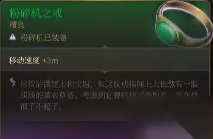 干掉营地里的地精“粉碎机”拾取。 也可以亲它的脚,然后过个检定偷来。 真有人要亲它的脚吗?有吗?有吗?有吗? 我称之为移动力第一神器过分吗? 配合亢奋头盔,第一轮直接多跑7.5m,见过满场飞的战士和武僧吗?现在你见到了。 文章内容导航 地精营地神殿
