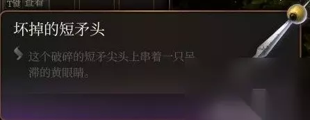 坏掉的短矛柄和矛头放在包里,右键点击合成 。 好东西,拿来叉眼魔有双倍快乐,插普通敌人也有目盲效果。 注意: 目盲仅限近战攻击,投掷无效果。 且只对眼魔有效,一周目打蜘蛛的时候没有额外的2D6.