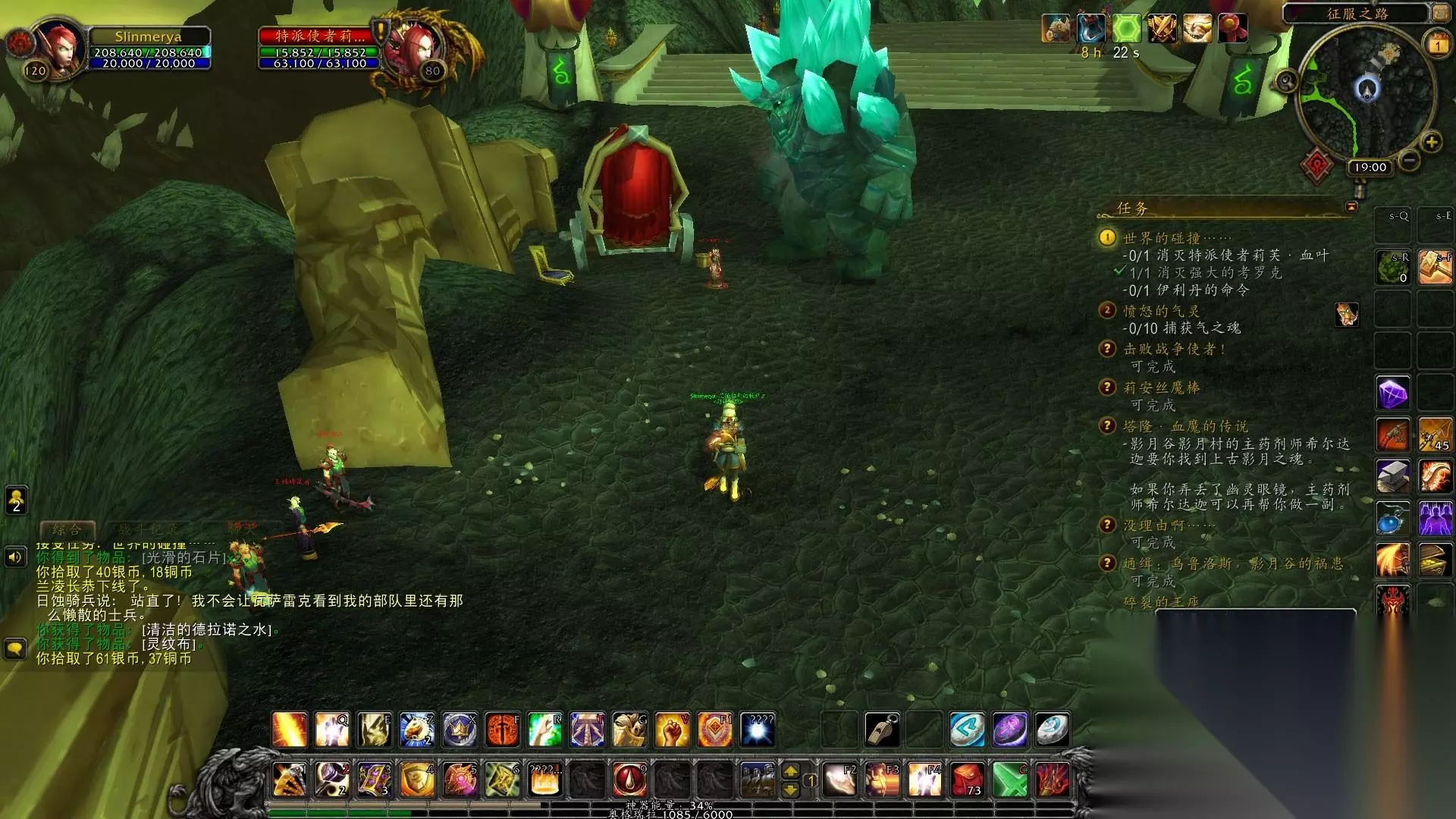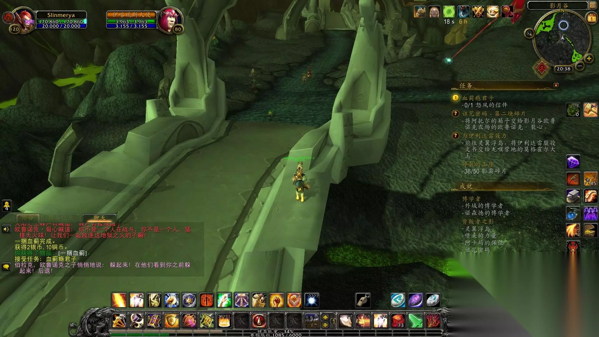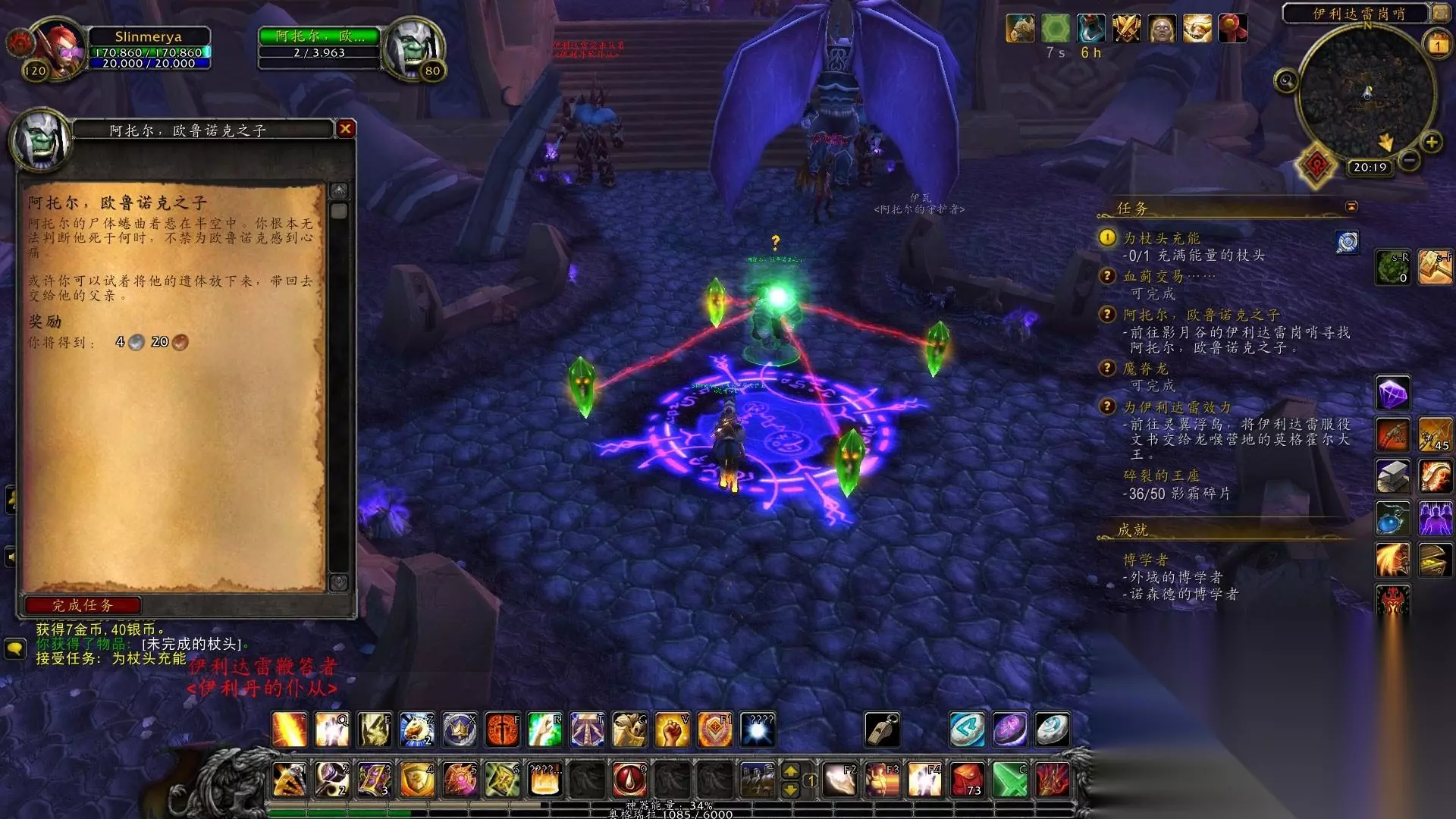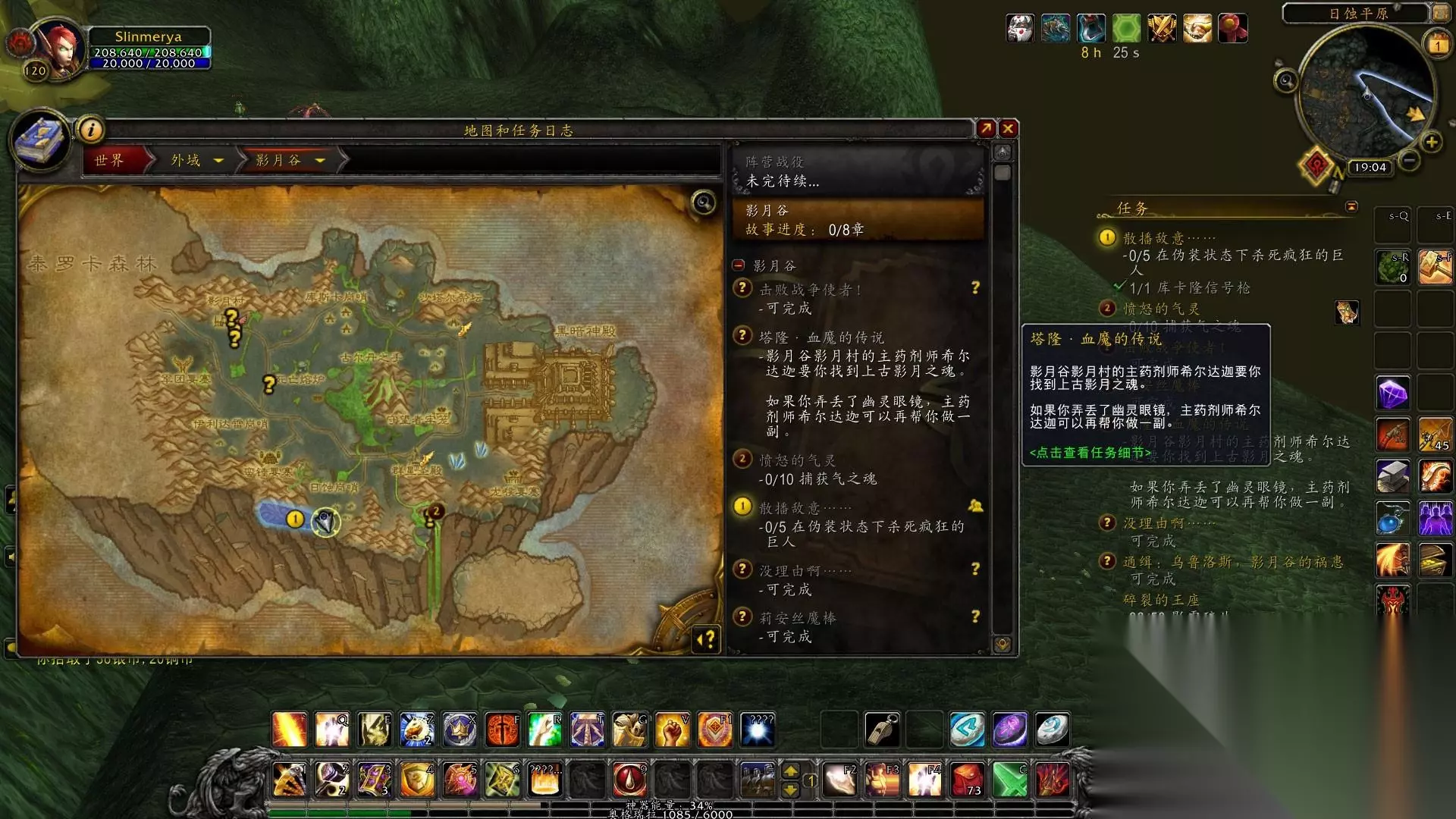 1.今天我们来影月谷做任务吧。一开始来这里的任务是非常有意义的。无论是战袍还是开门任务,这里都要做好前置。一开始,我们日夜奋战,就是为了尽快见到伊利丹。话不多说,我们来影月村接初始任务,在营地完成任务后,我们出去做毁灭地狱火的任务,然后收集永燃的灰烬,清理干净顺便打了魔法野猪,和魔法火双帆战斗失去了脾脏,然后去斯克塞隆废墟从拉文克劳那里收集了指挥官日记。全部完成后,回去交任务。 2、任务完成后,戴上眼镜,清理营地内的鬼魂。清理完毕后,交任务。然后我们就去军团要塞偷听计划。当我们飞到军事通讯器附近时,使用物品箱,等待NPC说完。任务完成。返回交接后,我接到了收集邪能机甲零件制作炸弹的任务。首先去臭水池拿动力核心,然后去军团要塞拿板甲。完成任务后,我们会来到军团要塞中使用准备好的炸弹,站在符文上使用。完成任务后,你会接到前往矿渣瞭望塔的任务。 3.先在熔岩平原路上找到帕尚接受任务,去废墟找到阿斯加德消灭它,然后拿到斯克塞隆战斗图腾,途中经过熔渣瞭望塔,接到任务清理阿斯加德暗影议会的爪牙,顺便做一下,交完任务后,我还是在死亡熔炉里做任务。在死亡熔炉里看到地狱火的灵魂后,摧毁它并得到元素转换器,然后在里面找到卡罗格什的尸体,得到他的背包,然后到门口下去,使用元素转换器打断召唤仪式,就会有地狱火的灵魂出来。完成任务后,回去交任务。 4.接受任务后,来到死亡熔炉。这一次,你可以用钥匙打开另一边的门了。当你走到最里面的时候,你就会看到战使。杀死它后,你就会得到命令。然后我们就出去,来到诅咒祭坛。任务是夺取土之魂和火之魂。吸引怪物后,先插腾,然后杀掉。捕捉距离很远,大约35码。收集够了之后交任务,然后做逮捕乌鲁洛斯的任务。向上 5.然后我们来到巴里废墟,找到蝎子控制器,然后标记大暴龙。完成后前往库斯卡池收集水之魂。收集完后回去交任务,然后先去日蚀岗哨打。血精灵拿到了钥匙,然后就去打开保险箱拿到了魔杖,然后我们就去了旁边的征服之路 6.来到征服之路后,跑两步完成任务,使用道具召唤库尔克隆,接到清道任务,击杀对应的任务怪物,使用道具召唤库尔克隆交任务,然后接到消灭信使的任务,找到一个强大的科洛克之子和一个在棚车附近聊天的血精灵,杀掉他们完成任务,然后把任务交给库卡隆,接到收集徽章的任务伊利达雷的战斗血精灵收集徽章,收集完之后接到散布敌意的任务,然后来到日食平原,使用伪装消灭巨人,然后前往暗影祭坛 7.来到暗影祭坛后,找到远古影月之魂,并接受收集三件血魔物品的任务。做之前先收集附近的风元素灵魂,然后我们就戴上眼镜走在黑暗神殿前的路上。消灭卡拉波骑士和牧师,得到血魔权杖和斗篷,然后去灵翼浮岛找到灵魂龙并消灭它来收集铠甲。回去交了任务后,我们发现远古影月魂就是血魔本人,他与我们融合后,击败了远古守望者并逃跑了。我们想带回消息 8.在灵翼平原找到莫纳德,接受灵翼幼龙的任务,消灭附近的石爪掠食者,得到它们的肉,放在地上,让幼龙下来吃。中间什么都不用做,等他吃完后对你说龙语就完成了。喂够数量后交任务,然后做寻找纳萨拉库的任务。这个任务要求我们会飞,因为这条龙在天上=。=,找到他并与他交谈后,他接到了攻击龙喉要塞的任务。杀掉十五只龙喉兽人后,他回去交任务,然后前往灵翼浮岛采集灵藤晶。在岛上,他看到了类似红色藤蔓的东西就是了。收集完所有物品后回去交任务,然后前往龙喉要塞营救幼龙。使用道具后,等待龙变绿,杀死龙。目标是完成任务。救下5条幼龙后,回去交任务。去龙喉要塞找到卡里纳库,找到它,等祖鲁希德出来杀掉他,拿钥匙救出卡里纳库,让他飞你回去交任务,然后在灵翼浮空上接受伪装任务岛屿,就是著名的虚空龙威望任务,先别急着去,交上之前的任务 9.诅咒祭坛和鸦人的任务以及影月村的任务完成并跟进,然后去军团要塞打武器匠拿到军团传送控制器,然后来到登陆点野外灾难,在影月村之后,接到任务后,消灭墨菲修斯博士,拿到钥匙,打开旁边的盒子,拿到说明书并交上任务,然后用魔法控制器控制魔法机甲毁灭地狱之火。限时任务很简单1技能清除地狱火,4技能运行,完成后交任务 10.然后去库斯卡哨所寻找裂心。我们在库斯卡泳池上方找到了他。我们接到了收集影月块茎的任务。在破碎平原上,站在附近的影月块茎堆上。当野猪吹响哨子时,野猪就会给你挖出来。收集完之后,交任务,接下去摧毁剥石者的蛋。回去和裂心对话,发现他一开始也是个恶人。让他的三个儿子收集诅咒代码以恢复德拉诺世界。我们先去库斯卡哨兵寻找第一个儿子,接到任务获取第一个诅咒代码碎片。在库斯卡哨兵处打纳贾拿到钥匙后,打开盒子看看运气。拿到碎片后,他去找二儿子。 11.找到布拉克后,你会接到任务,追捕阿文科蛋,然后去沙特拉兑换药物引诱特使,击倒骷髅营地的鸦人蛋收集羽毛。收集完鸡蛋和羽毛后,先别急着去沙塔斯,我们找到了第三个儿子。我们在伊利达雷哨兵处找到了阿托,但他被恶魔杀死了。我们找到了痛苦女王并杀死了她,拿到了钥匙,并放下了他的尸体。这时候他的灵魂出现了,让我们帮他找到诅咒代码碎片,先帮他找到弓,杀营地里的恶魔得到弓交付任务,然后他会用灵魂协助我们帮我找到弓。隐藏任务怪物,我在营地