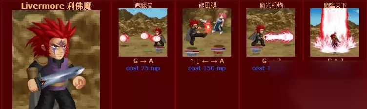 利佛魔应该是V0.7中最厉害的人物,无限的追踪波是逆天的技能,修改后的游戏可以支持无限发射。旋风腿、魔光杀炮都具有强悍的威力,最后的大技能魔临天下更是精彩非常。