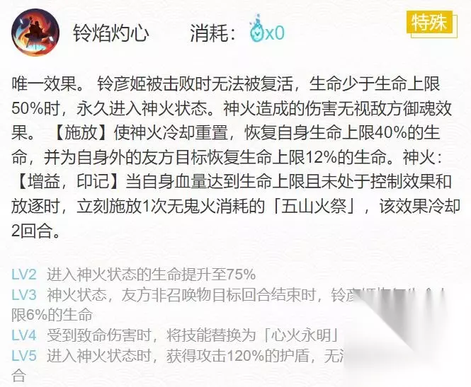 技能二:铃焰灼心(0火)