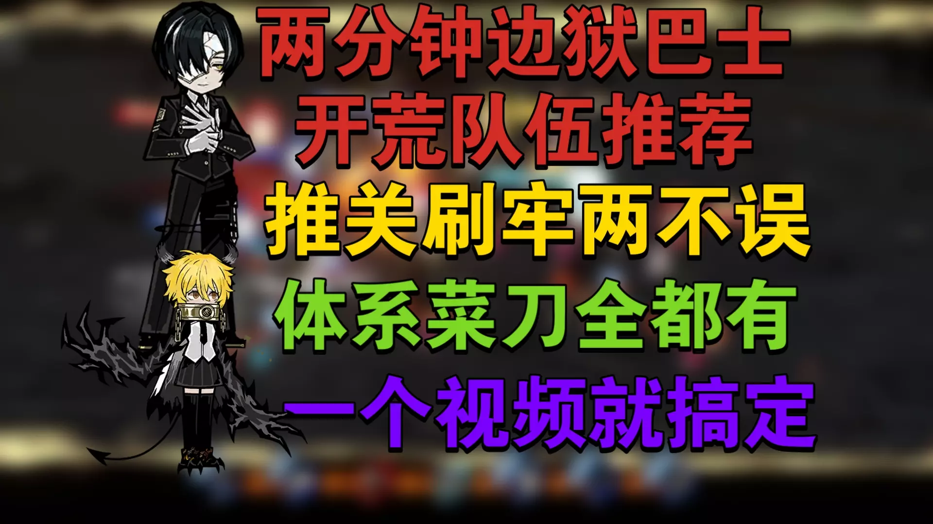 之前那个开荒攻略做的不是特别满意,新入坑的朋友或者去新区的朋友可以优先看这版。这个更细节和准确一些。当然也比较长和啰嗦(因为讲的比较细) 章节如下: 0:00 前言 0:55 开荒队伍推荐(组队思路) 6:09 开荒土地难度梯度 9:42 开荒流程 13:03 开荒技巧总结