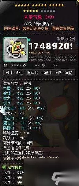图片来源于网络(潜能如果是白毛用,自然还需要洗成HP) 天堂气息戒指会给予使用者多一个技能(可以无视攻击一次,防止被秒杀,并且施加稳如泰山的效果。):