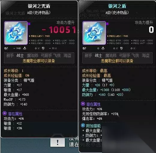 恶魔猎手使用的银河盾叫:银河之咒盾,而恶魔复仇者使用的盾牌为银河之盾(细节对比在于MaxDF[恶魔猎手的最大精气值],装备属性带有MaxDF的就是恶魔猎手使用的咒盾,不带MaxDF的,就是恶魔复仇者的精气盾,因此玩家们购买银河精气盾的时候不要购买错了)。 由于白毛没有无敌,血量比较多,可以考虑做龟龟戒指任务获得一个带无敌技能的龟龟戒指: