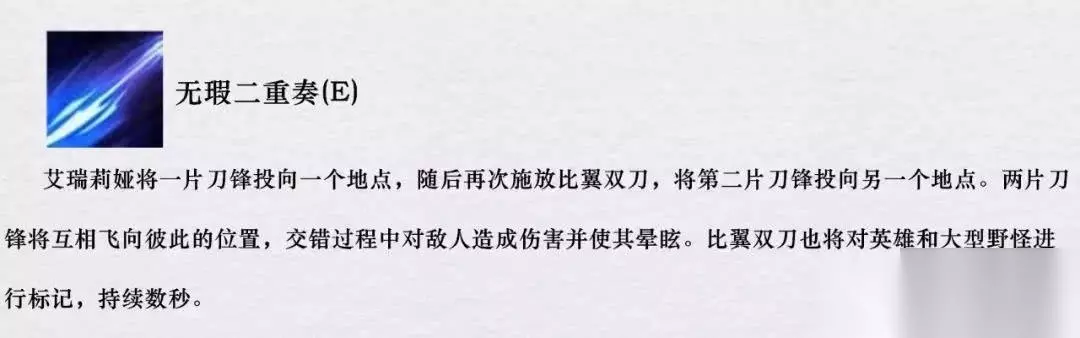 E技能是刀妹的控制技能,控制方式和霞E技能有些相似,需要调整技能角度,布置好刀刃的位置,确保敌人处于两片刀刃形成的直线上才能打出控制,释放起来有些难度。