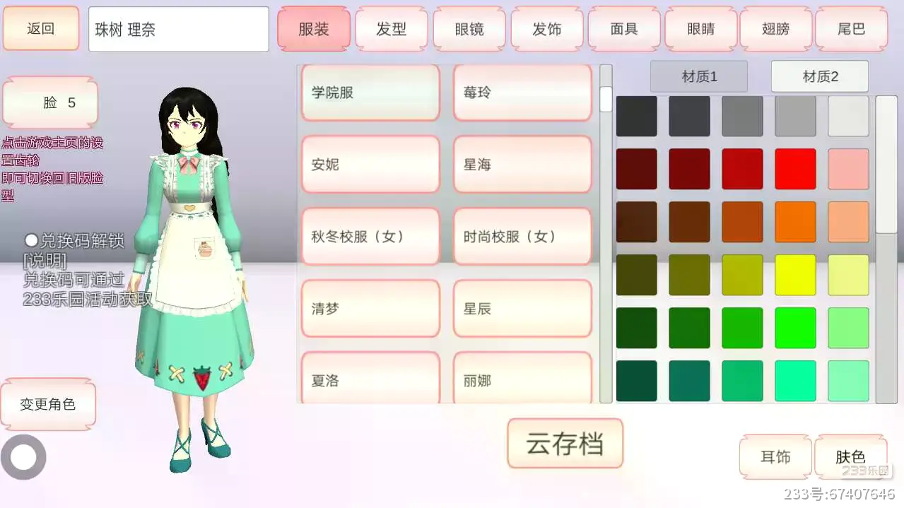 白绿色,围裙上有小蛋糕,领子上还有蝴蝶结。安妮也是女主兑换码服装中唯一一个可以换颜色的衣服。